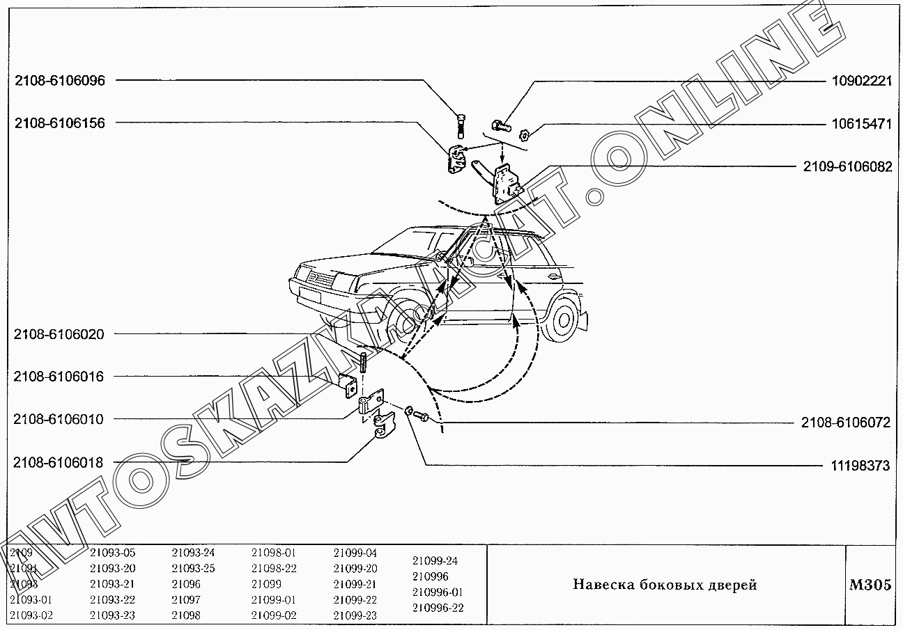 Навеска боковых дверей ВАЗ 21099 (21099, 21099-01, 21099-02, 21099-04, 210996, 210996-01 (карб.), 21099-20, 21099-21, 21099-22, 21099-23, 21099-24, 210996-22 (впрыск))