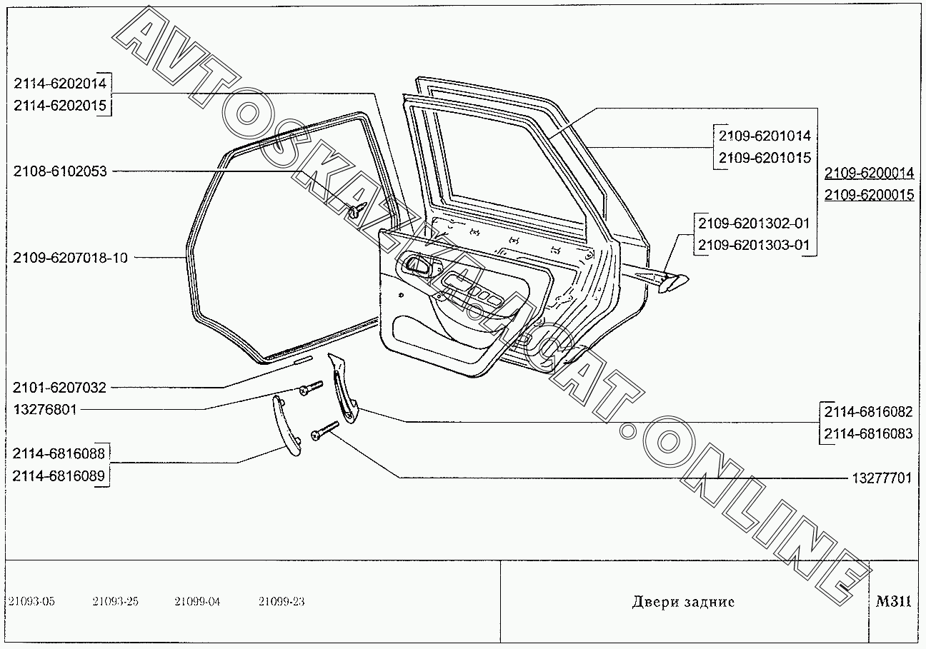 Двери задние ВАЗ 21099 (21099, 21099-01, 21099-02, 21099-04, 210996, 210996-01 (карб.), 21099-20, 21099-21, 21099-22, 21099-23, 21099-24, 210996-22 (впрыск))