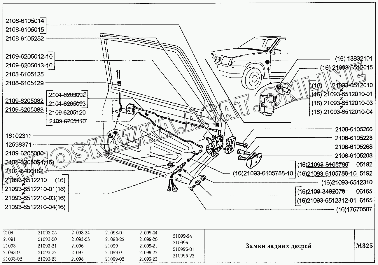 Замки задних дверей ВАЗ 21099 (21099, 21099-01, 21099-02, 21099-04, 210996, 210996-01 (карб.), 21099-20, 21099-21, 21099-22, 21099-23, 21099-24, 210996-22 (впрыск))