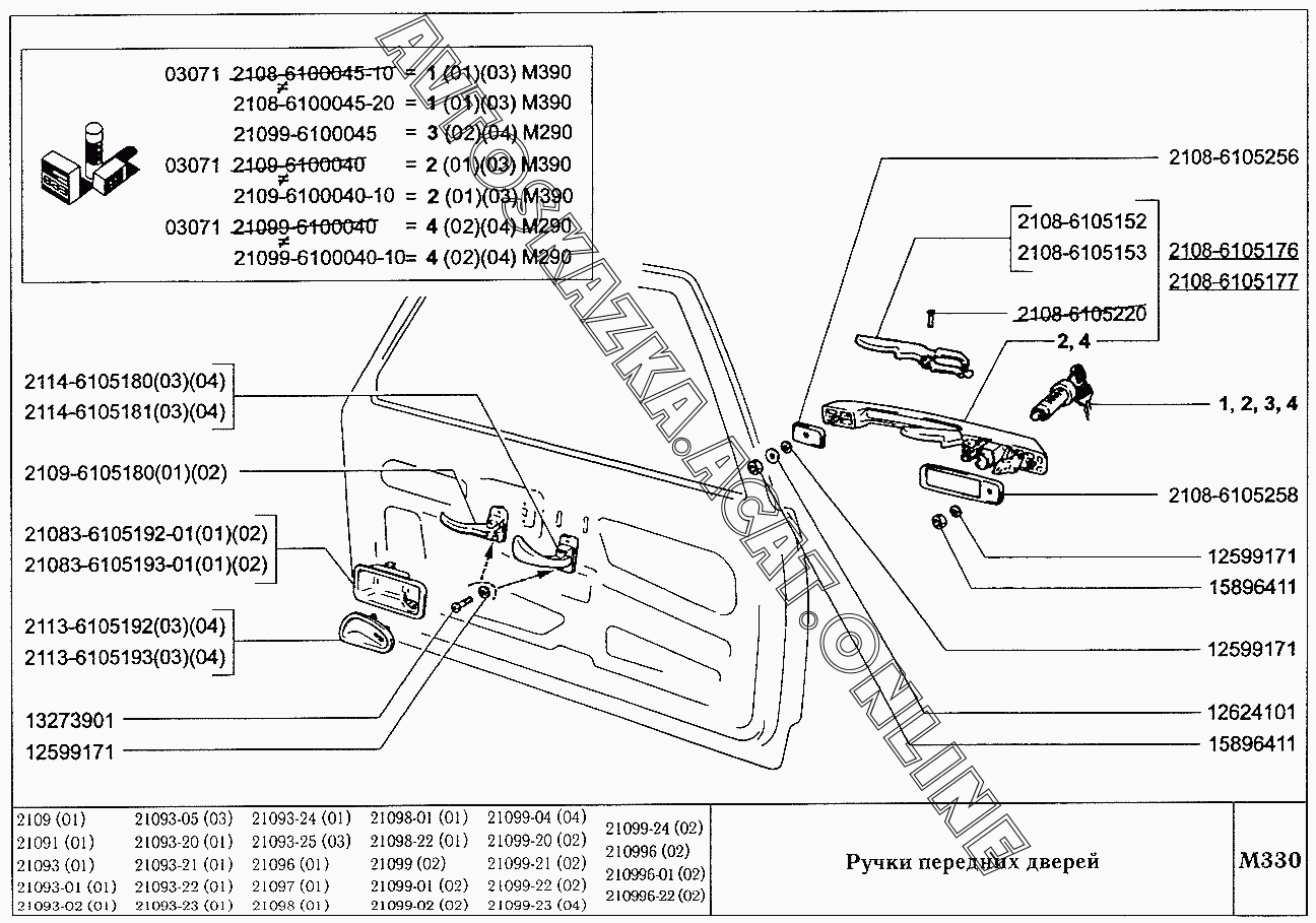1 - для автомобилей ВАЗ-2109, 21093, 21099 и их модификаций