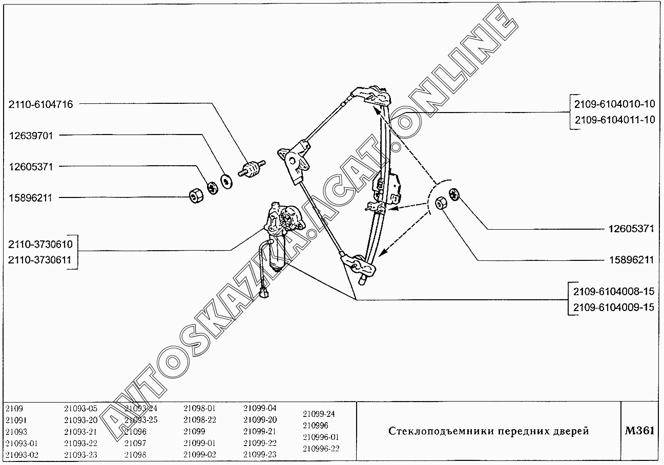 Стеклоподъемники передних дверей ВАЗ 21099 (21099, 21099-01, 21099-02, 21099-04, 210996, 210996-01 (карб.), 21099-20, 21099-21, 21099-22, 21099-23, 21099-24, 210996-22 (впрыск))