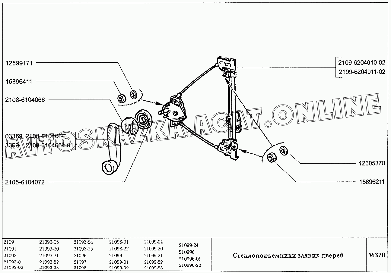 Стеклоподъемники задних дверей ВАЗ 21099 (21099, 21099-01, 21099-02, 21099-04, 210996, 210996-01 (карб.), 21099-20, 21099-21, 21099-22, 21099-23, 21099-24, 210996-22 (впрыск))