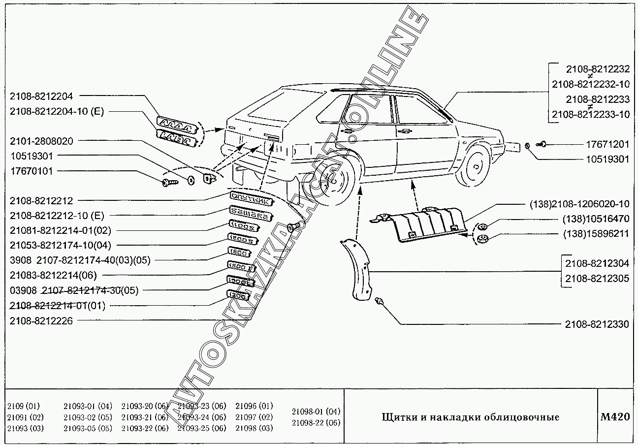 Щитки и накладки облицовочные ВАЗ 21099 (21099, 21099-01, 21099-02, 21099-04, 210996, 210996-01 (карб.), 21099-20, 21099-21, 21099-22, 21099-23, 21099-24, 210996-22 (впрыск))