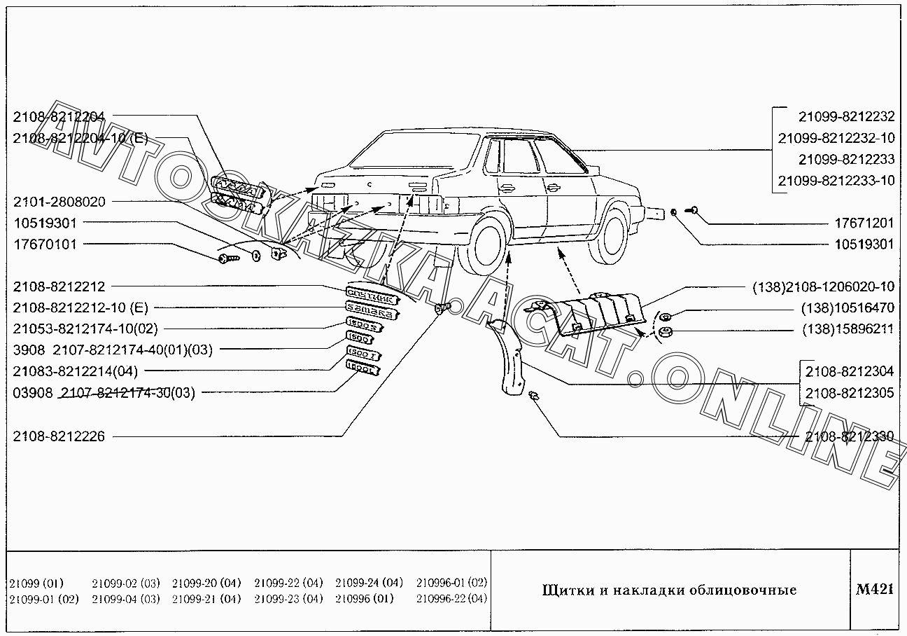 Щитки и накладки облицовочные ВАЗ 21099 (21099, 21099-01, 21099-02, 21099-04, 210996, 210996-01 (карб.), 21099-20, 21099-21, 21099-22, 21099-23, 21099-24, 210996-22 (впрыск))