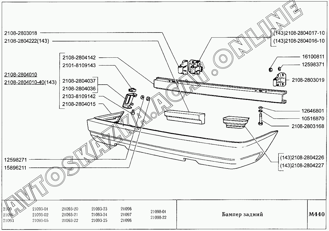 Бампер задний ВАЗ 21099 (21099, 21099-01, 21099-02, 21099-04, 210996, 210996-01 (карб.), 21099-20, 21099-21, 21099-22, 21099-23, 21099-24, 210996-22 (впрыск))