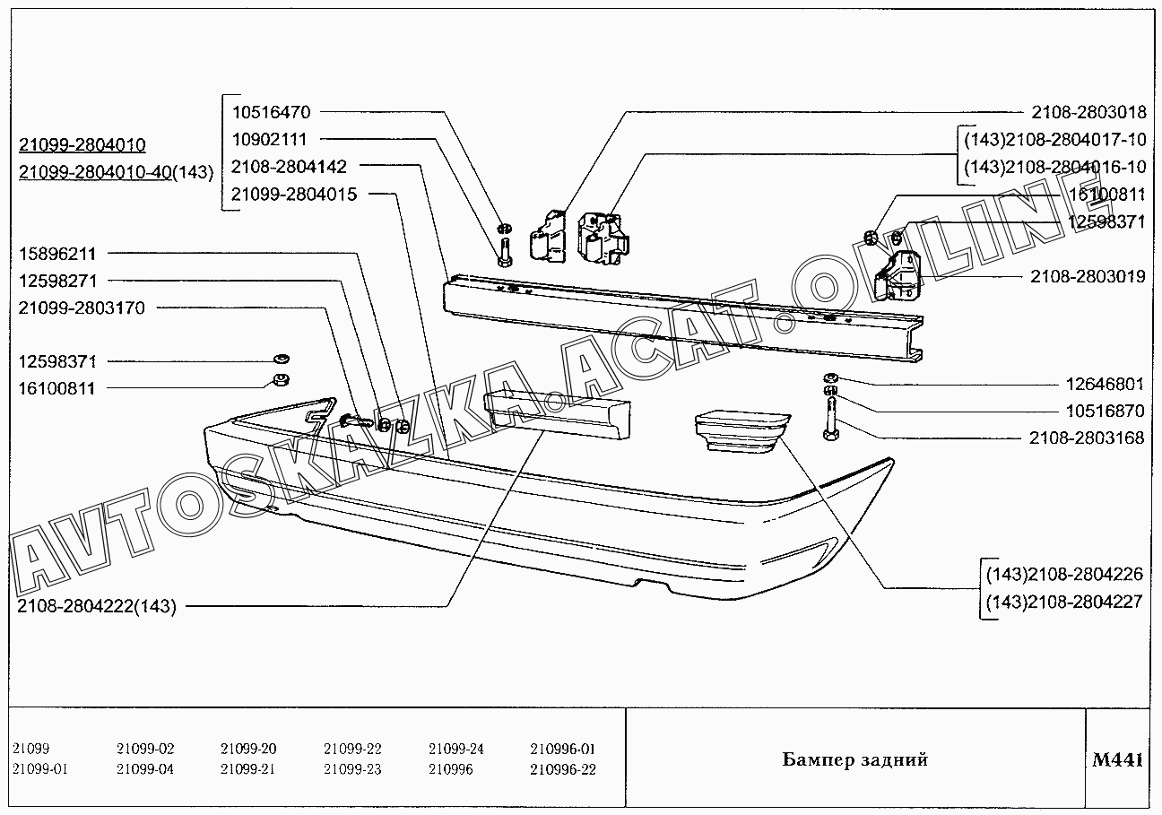 Бампер задний ВАЗ 21099 (21099, 21099-01, 21099-02, 21099-04, 210996, 210996-01 (карб.), 21099-20, 21099-21, 21099-22, 21099-23, 21099-24, 210996-22 (впрыск))