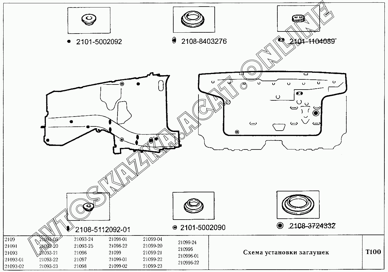 Схема установки заглушек ВАЗ 21099 (21099, 21099-01, 21099-02, 21099-04, 210996, 210996-01 (карб.), 21099-20, 21099-21, 21099-22, 21099-23, 21099-24, 210996-22 (впрыск))