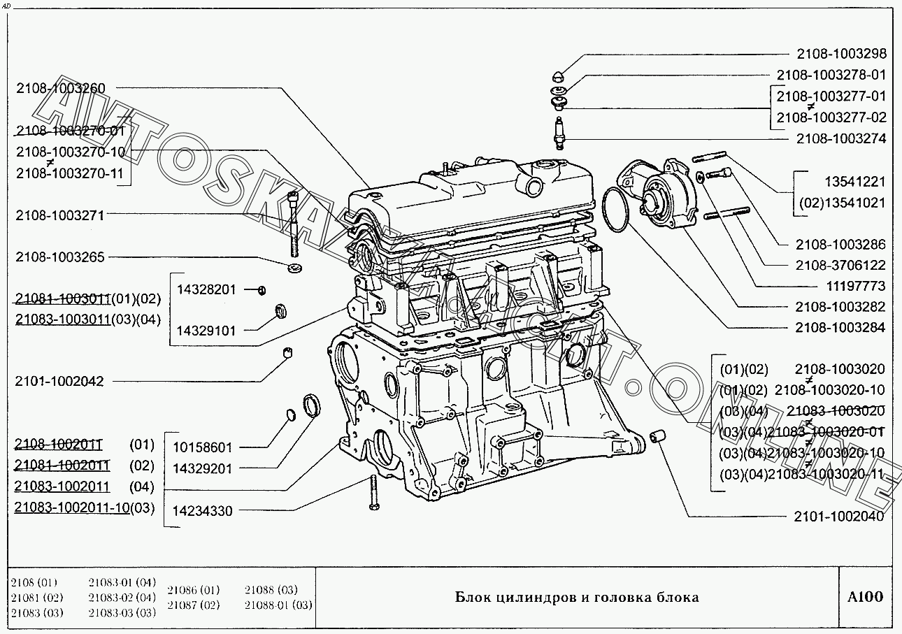 Блок цилиндров и головка блока ВАЗ 2108 (2108 (до 01.2000), 21081 (до 05.1997), 21083, 21083-01, 21083-02 (до 09.2000), 21083-03 (до 2000), 21083-20 (до 2000), 21083-21 (до 09.2000), 21083-22 (до 2000), 21083-24 (до 03.2000), 21083-24 (до 2002), 21086, 21087, 21088, 21088-01, 21088-22 (до 1999))
