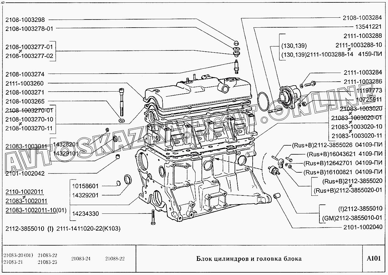 Блок цилиндров и головка блока ВАЗ 2108 (2108 (до 01.2000), 21081 (до 05.1997), 21083, 21083-01, 21083-02 (до 09.2000), 21083-03 (до 2000), 21083-20 (до 2000), 21083-21 (до 09.2000), 21083-22 (до 2000), 21083-24 (до 03.2000), 21083-24 (до 2002), 21086, 21087, 21088, 21088-01, 21088-22 (до 1999))