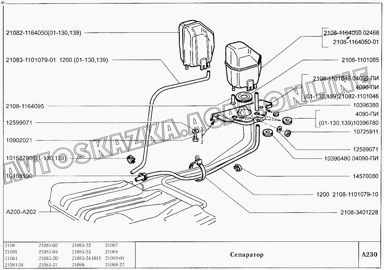 | Модификации: | 2108 (до 01.2000), 21081 (до 05.1997), 21083, 21083-01, 21083-02 (до 09.2000), 21083-03 (до 2000), 21083-20 (до 2000), 21083-21 (до 09.2000), 21083-22 (до 2000), 21083-24 (до 03.2000), 21083-24 (до 2002), 21086, 21087, 21088, 21088-01, 21088-22 (до 1999) |