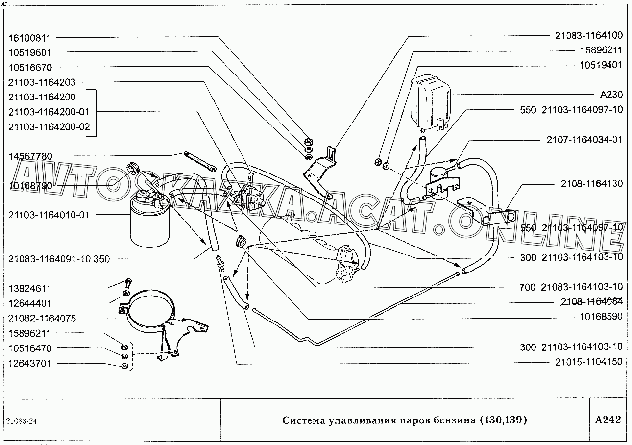 Система улавливания паров бензина (вариант исполнения 130,139) ВАЗ 2108 (2108 (до 01.2000), 21081 (до 05.1997), 21083, 21083-01, 21083-02 (до 09.2000), 21083-03 (до 2000), 21083-20 (до 2000), 21083-21 (до 09.2000), 21083-22 (до 2000), 21083-24 (до 03.2000), 21083-24 (до 2002), 21086, 21087, 21088, 21088-01, 21088-22 (до 1999))