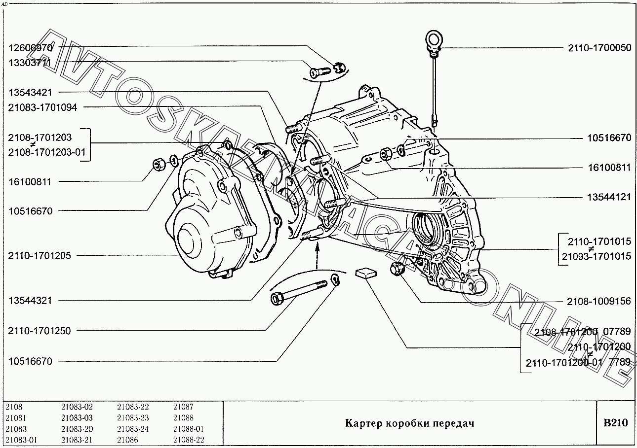 Картер коробки передач ВАЗ 2108 (2108 (до 01.2000), 21081 (до 05.1997), 21083, 21083-01, 21083-02 (до 09.2000), 21083-03 (до 2000), 21083-20 (до 2000), 21083-21 (до 09.2000), 21083-22 (до 2000), 21083-24 (до 03.2000), 21083-24 (до 2002), 21086, 21087, 21088, 21088-01, 21088-22 (до 1999))