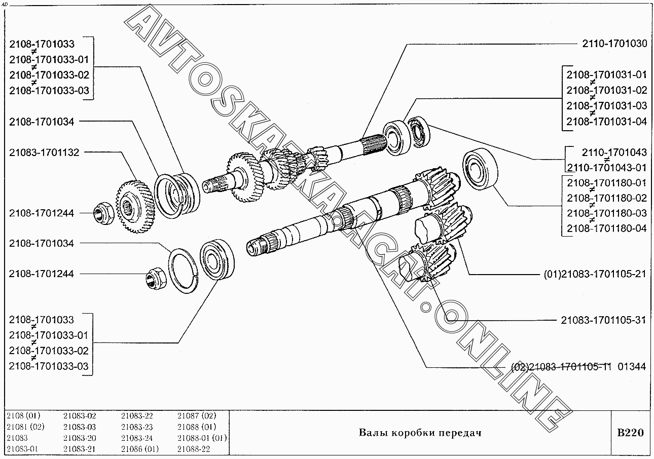 Валы коробки передач ВАЗ 2108 (2108 (до 01.2000), 21081 (до 05.1997), 21083, 21083-01, 21083-02 (до 09.2000), 21083-03 (до 2000), 21083-20 (до 2000), 21083-21 (до 09.2000), 21083-22 (до 2000), 21083-24 (до 03.2000), 21083-24 (до 2002), 21086, 21087, 21088, 21088-01, 21088-22 (до 1999))