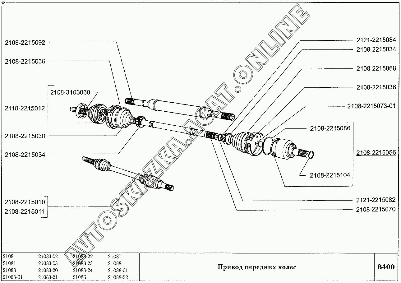 Привод передних колес ВАЗ 2108 (2108 (до 01.2000), 21081 (до 05.1997), 21083, 21083-01, 21083-02 (до 09.2000), 21083-03 (до 2000), 21083-20 (до 2000), 21083-21 (до 09.2000), 21083-22 (до 2000), 21083-24 (до 03.2000), 21083-24 (до 2002), 21086, 21087, 21088, 21088-01, 21088-22 (до 1999))