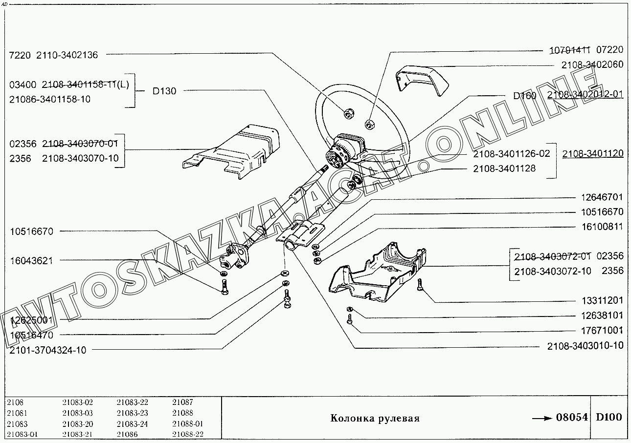 Колонка рулевая ВАЗ 2108 (2108 (до 01.2000), 21081 (до 05.1997), 21083, 21083-01, 21083-02 (до 09.2000), 21083-03 (до 2000), 21083-20 (до 2000), 21083-21 (до 09.2000), 21083-22 (до 2000), 21083-24 (до 03.2000), 21083-24 (до 2002), 21086, 21087, 21088, 21088-01, 21088-22 (до 1999))