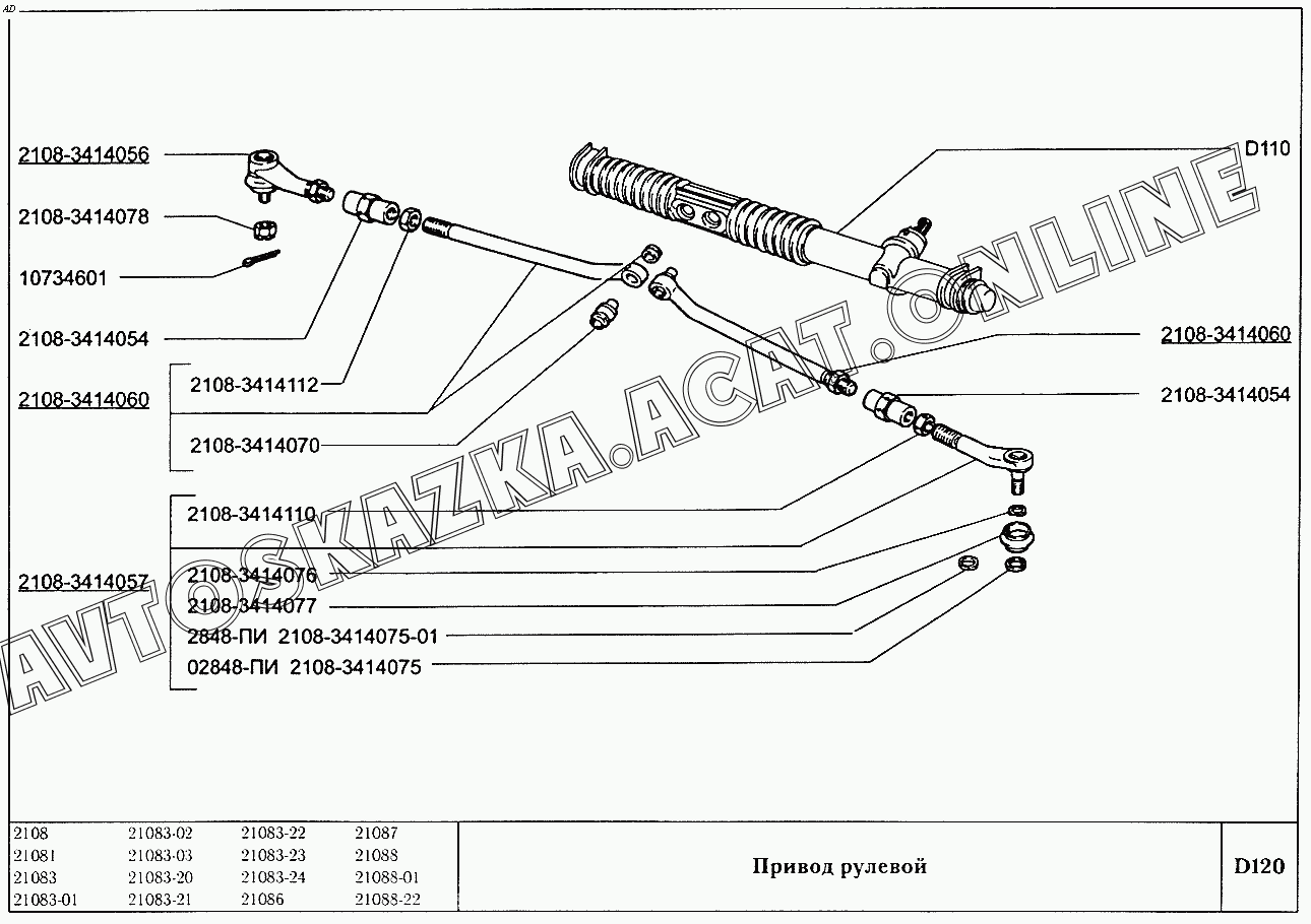 Привод рулевой ВАЗ 2108 (2108 (до 01.2000), 21081 (до 05.1997), 21083, 21083-01, 21083-02 (до 09.2000), 21083-03 (до 2000), 21083-20 (до 2000), 21083-21 (до 09.2000), 21083-22 (до 2000), 21083-24 (до 03.2000), 21083-24 (до 2002), 21086, 21087, 21088, 21088-01, 21088-22 (до 1999))