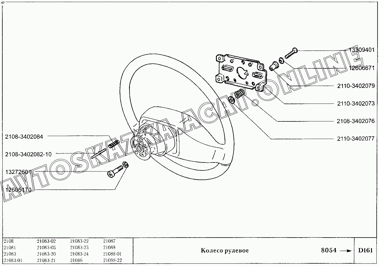 Колесо рулевое ВАЗ 2108 (2108 (до 01.2000), 21081 (до 05.1997), 21083, 21083-01, 21083-02 (до 09.2000), 21083-03 (до 2000), 21083-20 (до 2000), 21083-21 (до 09.2000), 21083-22 (до 2000), 21083-24 (до 03.2000), 21083-24 (до 2002), 21086, 21087, 21088, 21088-01, 21088-22 (до 1999))