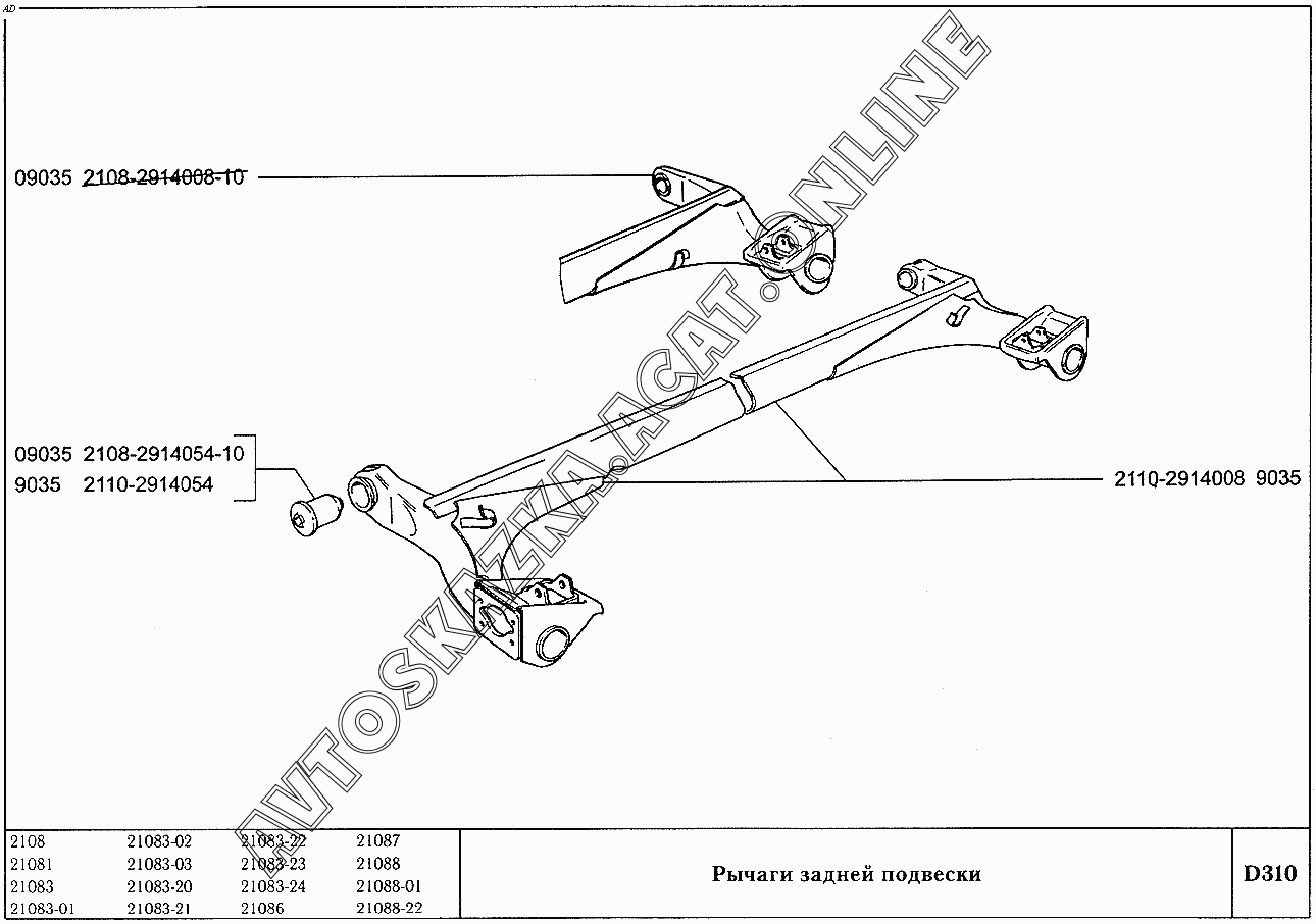 Рычаги задней подвески ВАЗ 2108 (2108 (до 01.2000), 21081 (до 05.1997), 21083, 21083-01, 21083-02 (до 09.2000), 21083-03 (до 2000), 21083-20 (до 2000), 21083-21 (до 09.2000), 21083-22 (до 2000), 21083-24 (до 03.2000), 21083-24 (до 2002), 21086, 21087, 21088, 21088-01, 21088-22 (до 1999))