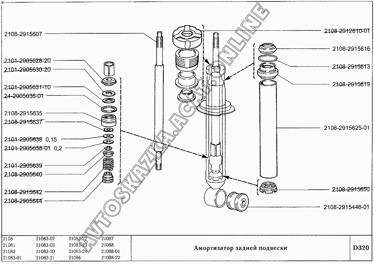 Амортизатор задней подвески ВАЗ 2108 (2108 (до 01.2000), 21081 (до 05.1997), 21083, 21083-01, 21083-02 (до 09.2000), 21083-03 (до 2000), 21083-20 (до 2000), 21083-21 (до 09.2000), 21083-22 (до 2000), 21083-24 (до 03.2000), 21083-24 (до 2002), 21086, 21087, 21088, 21088-01, 21088-22 (до 1999))