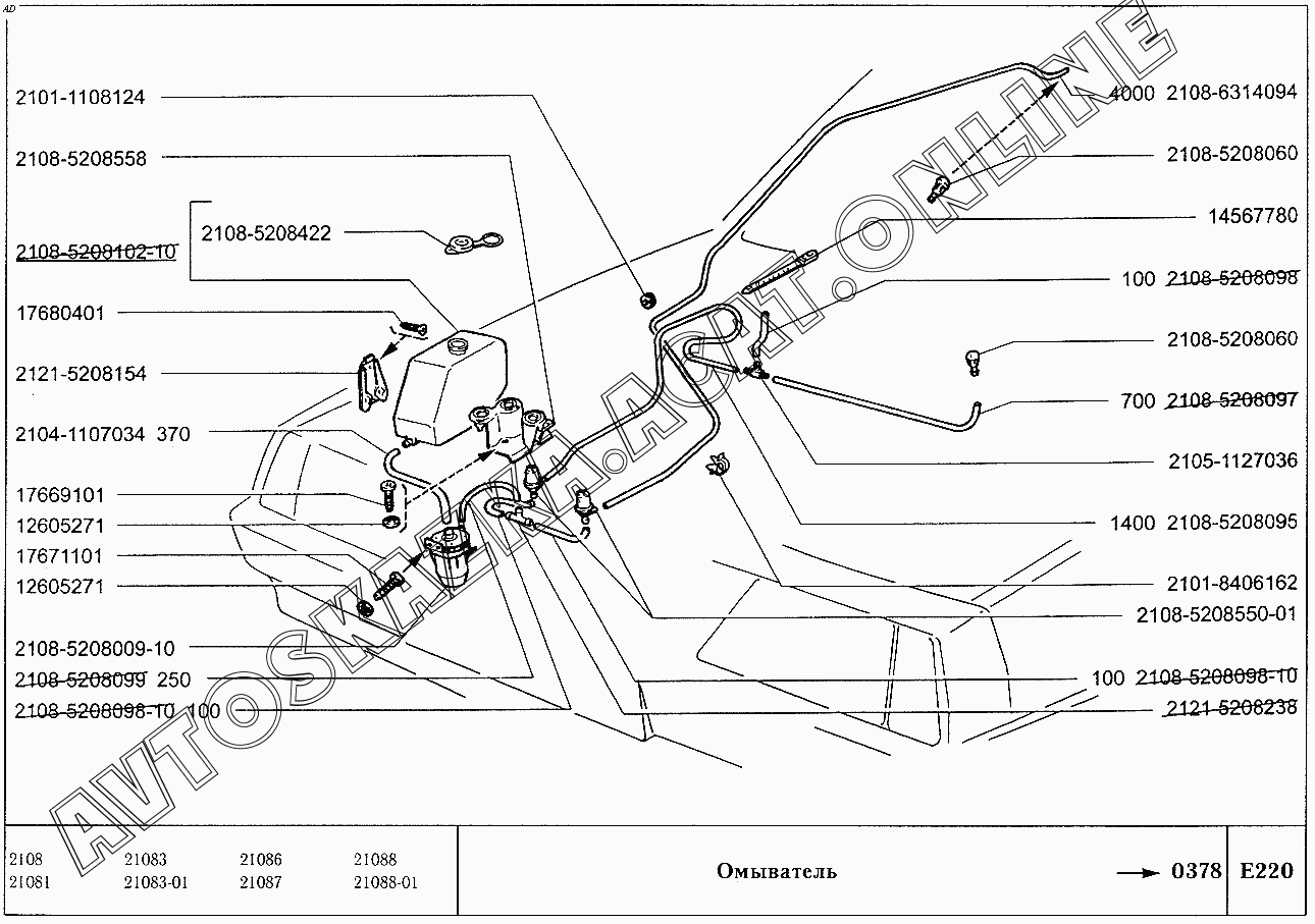 Омыватель ВАЗ 2108 (2108 (до 01.2000), 21081 (до 05.1997), 21083, 21083-01, 21083-02 (до 09.2000), 21083-03 (до 2000), 21083-20 (до 2000), 21083-21 (до 09.2000), 21083-22 (до 2000), 21083-24 (до 03.2000), 21083-24 (до 2002), 21086, 21087, 21088, 21088-01, 21088-22 (до 1999))