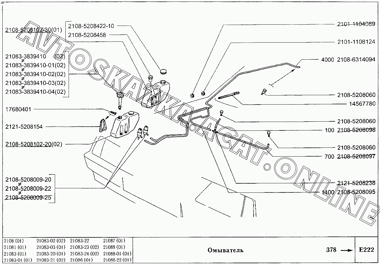 Омыватель ВАЗ 2108 (2108 (до 01.2000), 21081 (до 05.1997), 21083, 21083-01, 21083-02 (до 09.2000), 21083-03 (до 2000), 21083-20 (до 2000), 21083-21 (до 09.2000), 21083-22 (до 2000), 21083-24 (до 03.2000), 21083-24 (до 2002), 21086, 21087, 21088, 21088-01, 21088-22 (до 1999))