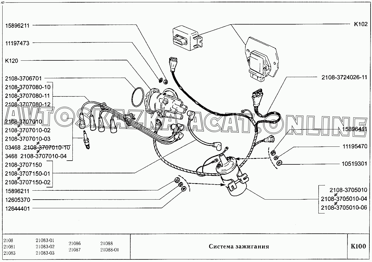 Система зажигания ВАЗ 2108 (2108 (до 01.2000), 21081 (до 05.1997), 21083, 21083-01, 21083-02 (до 09.2000), 21083-03 (до 2000), 21083-20 (до 2000), 21083-21 (до 09.2000), 21083-22 (до 2000), 21083-24 (до 03.2000), 21083-24 (до 2002), 21086, 21087, 21088, 21088-01, 21088-22 (до 1999))