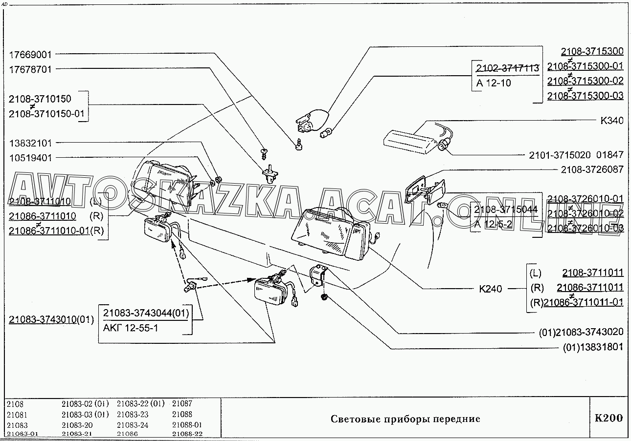 Световые приборы передние ВАЗ 2108 (2108 (до 01.2000), 21081 (до 05.1997), 21083, 21083-01, 21083-02 (до 09.2000), 21083-03 (до 2000), 21083-20 (до 2000), 21083-21 (до 09.2000), 21083-22 (до 2000), 21083-24 (до 03.2000), 21083-24 (до 2002), 21086, 21087, 21088, 21088-01, 21088-22 (до 1999))