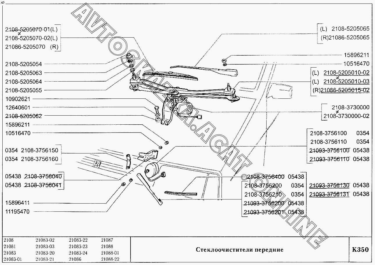 Стеклоочистители передние ВАЗ 2108 (2108 (до 01.2000), 21081 (до 05.1997), 21083, 21083-01, 21083-02 (до 09.2000), 21083-03 (до 2000), 21083-20 (до 2000), 21083-21 (до 09.2000), 21083-22 (до 2000), 21083-24 (до 03.2000), 21083-24 (до 2002), 21086, 21087, 21088, 21088-01, 21088-22 (до 1999))