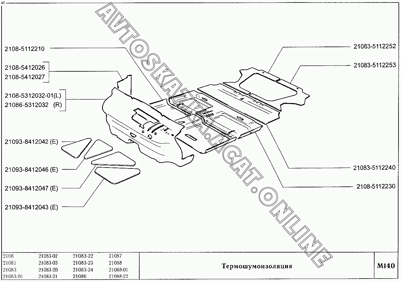 Термошумоизоляция ВАЗ 2108 (2108 (до 01.2000), 21081 (до 05.1997), 21083, 21083-01, 21083-02 (до 09.2000), 21083-03 (до 2000), 21083-20 (до 2000), 21083-21 (до 09.2000), 21083-22 (до 2000), 21083-24 (до 03.2000), 21083-24 (до 2002), 21086, 21087, 21088, 21088-01, 21088-22 (до 1999))