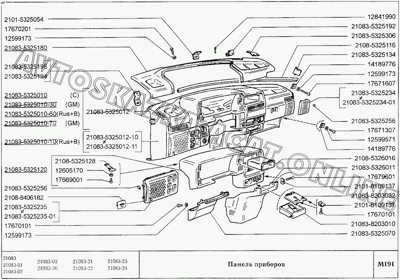 Панель приборов ВАЗ 2108 (2108 (до 01.2000), 21081 (до 05.1997), 21083, 21083-01, 21083-02 (до 09.2000), 21083-03 (до 2000), 21083-20 (до 2000), 21083-21 (до 09.2000), 21083-22 (до 2000), 21083-24 (до 03.2000), 21083-24 (до 2002), 21086, 21087, 21088, 21088-01, 21088-22 (до 1999))