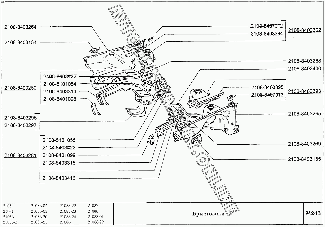 | Модификации: | 2108 (до 01.2000), 21081 (до 05.1997), 21083, 21083-01, 21083-02 (до 09.2000), 21083-03 (до 2000), 21083-20 (до 2000), 21083-21 (до 09.2000), 21083-22 (до 2000), 21083-24 (до 03.2000), 21083-24 (до 2002), 21086, 21087, 21088, 21088-01, 21088-22 (до 1999) |
