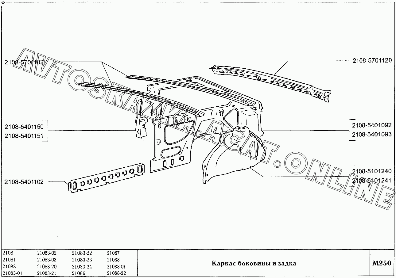 Каркас боковины и задка ВАЗ 2108 (2108 (до 01.2000), 21081 (до 05.1997), 21083, 21083-01, 21083-02 (до 09.2000), 21083-03 (до 2000), 21083-20 (до 2000), 21083-21 (до 09.2000), 21083-22 (до 2000), 21083-24 (до 03.2000), 21083-24 (до 2002), 21086, 21087, 21088, 21088-01, 21088-22 (до 1999))