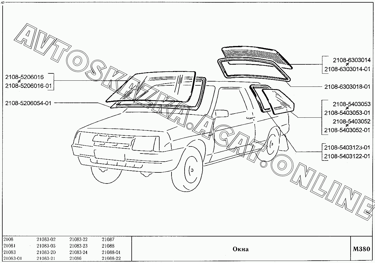Окна ВАЗ 2108 (2108 (до 01.2000), 21081 (до 05.1997), 21083, 21083-01, 21083-02 (до 09.2000), 21083-03 (до 2000), 21083-20 (до 2000), 21083-21 (до 09.2000), 21083-22 (до 2000), 21083-24 (до 03.2000), 21083-24 (до 2002), 21086, 21087, 21088, 21088-01, 21088-22 (до 1999))