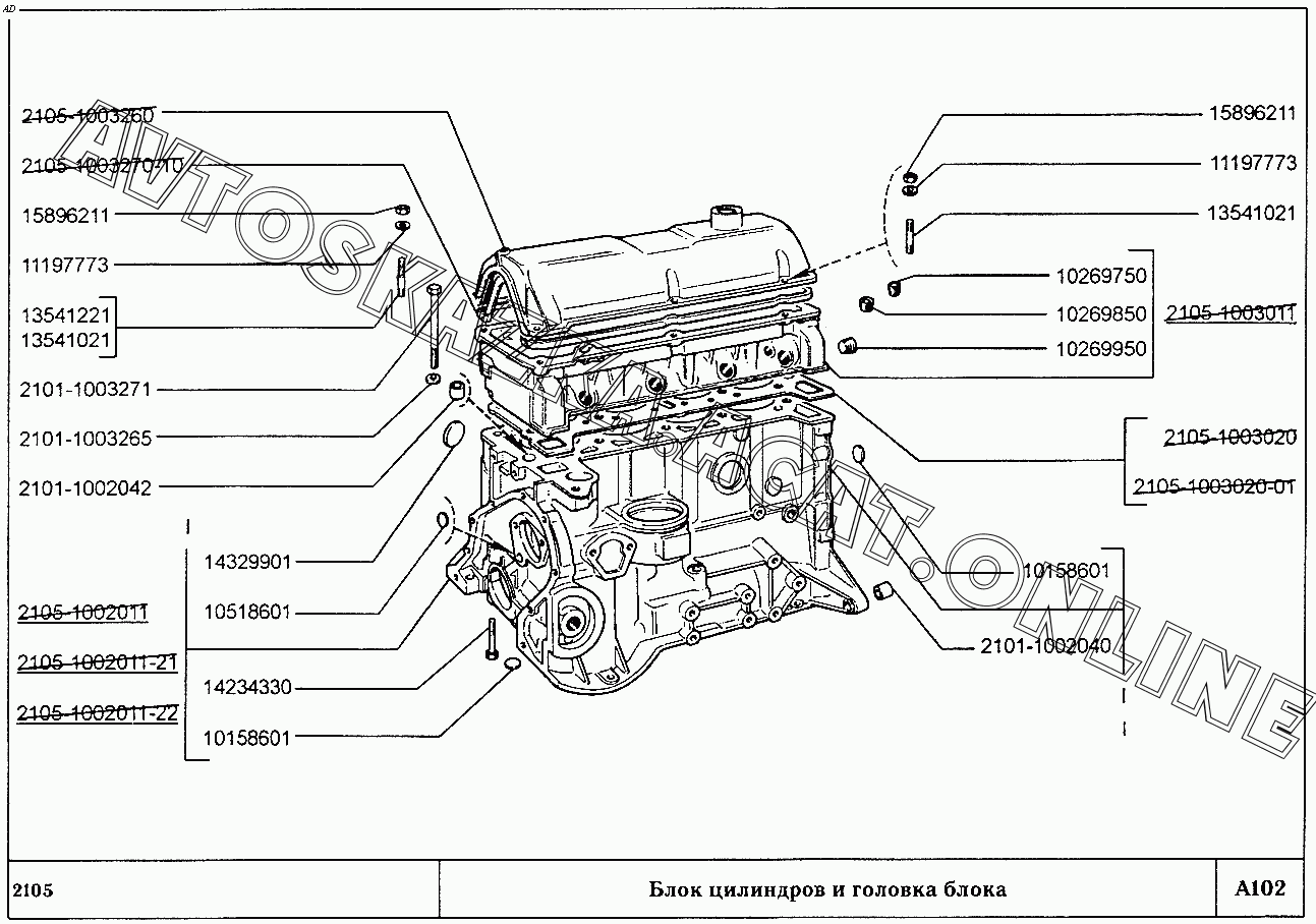 Блок цилиндров и головка блока ВАЗ 2105 (21051, 21053)