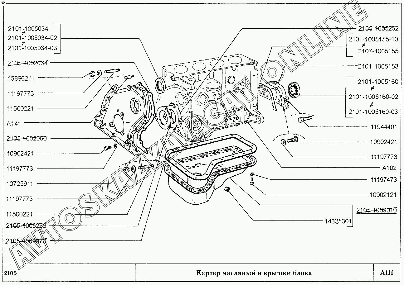 Картер масляный и крышки блока ВАЗ 2105 (21051, 21053)