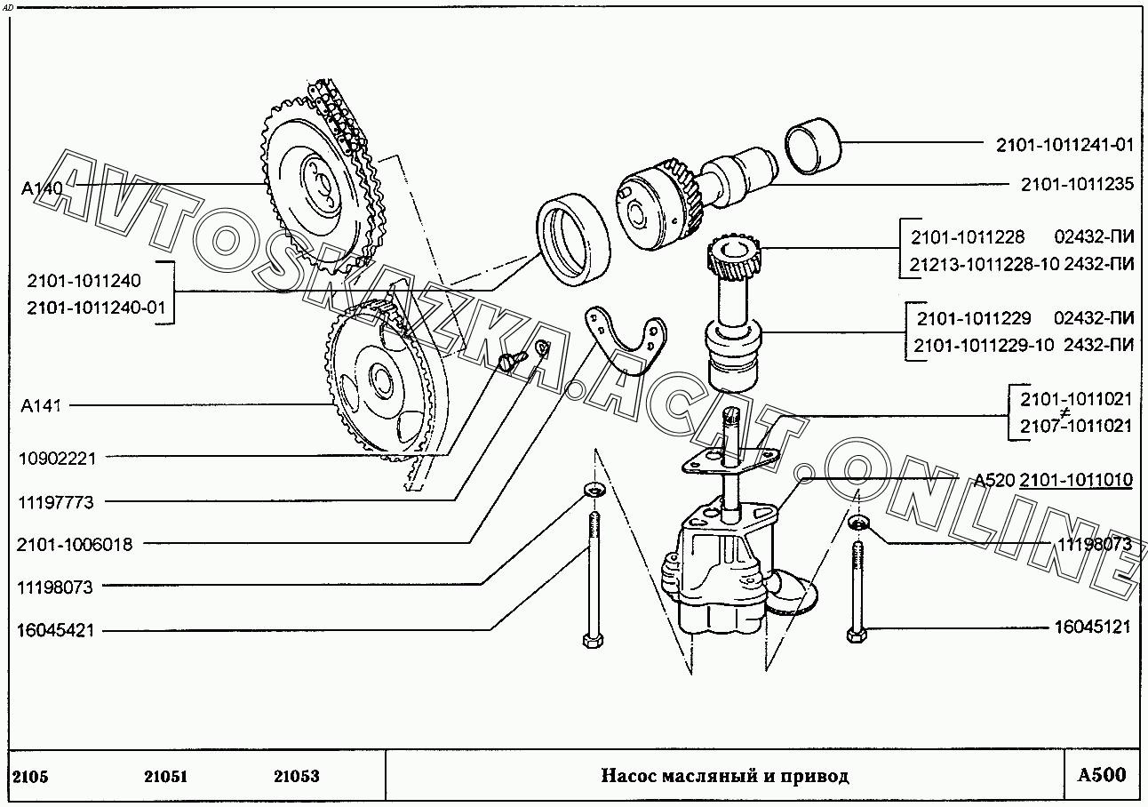 Насос масляный и привод ВАЗ 2105 (21051, 21053)