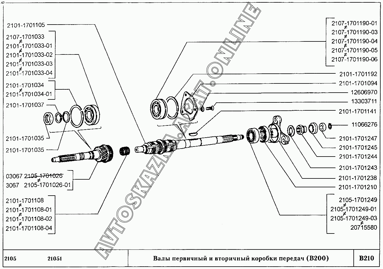 Валы первичный и вторичный коробки передач ВАЗ 2105 (21051, 21053)