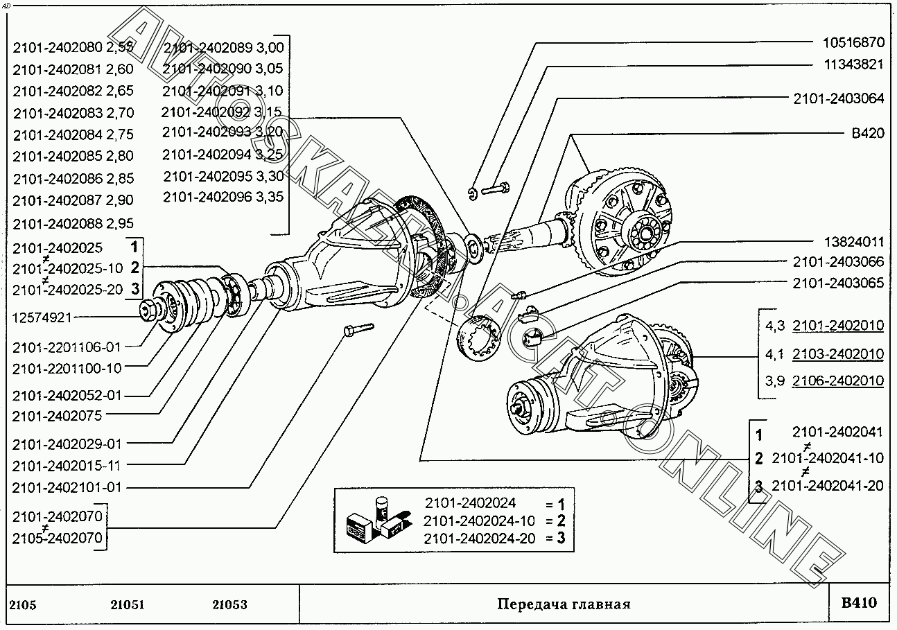 1 - для автомобилей ВАЗ-2105 и его модификаций