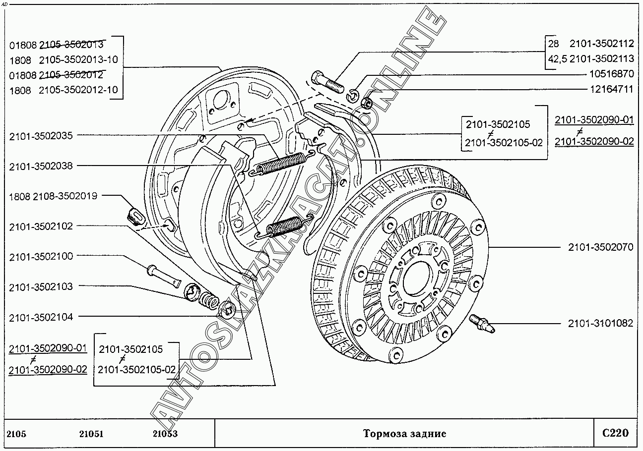 Тормоза задние ВАЗ 2105 (21051, 21053)