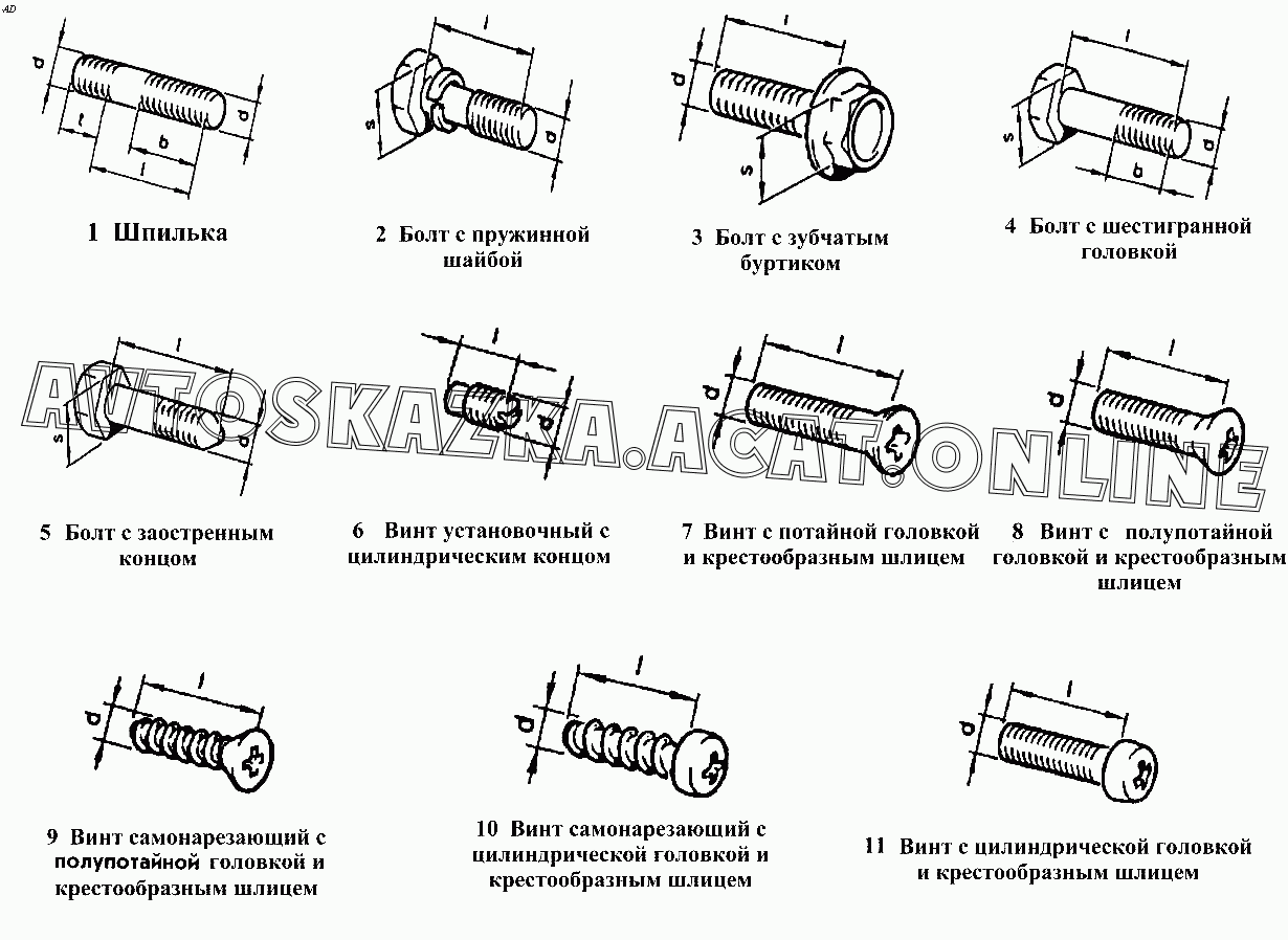 | Название детали: | Винт самонарезающий с полупотайной головкой и крестообразным шлицем (d=5,6; l=25,4) |