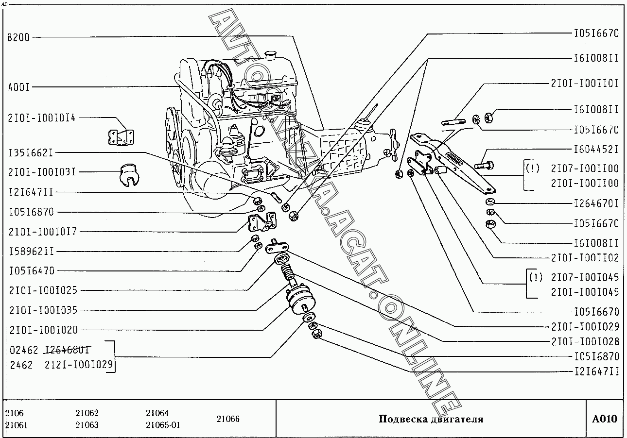 Подвеска двигателя ВАЗ 2106 (21061, 21062, 21063, 21064, 21065-01, 21066)