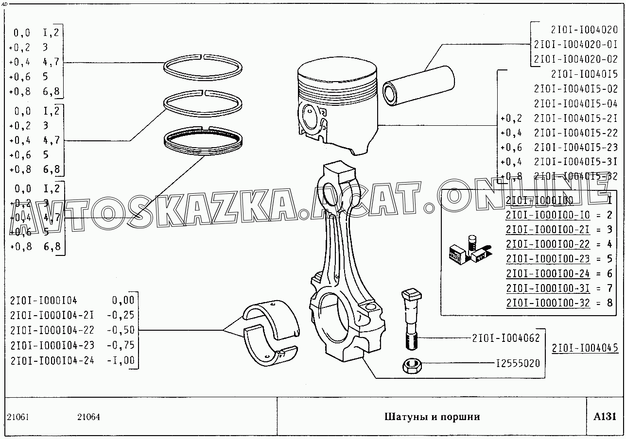 Шатуны и поршни ВАЗ 2106 (21061, 21062, 21063, 21064, 21065-01, 21066)