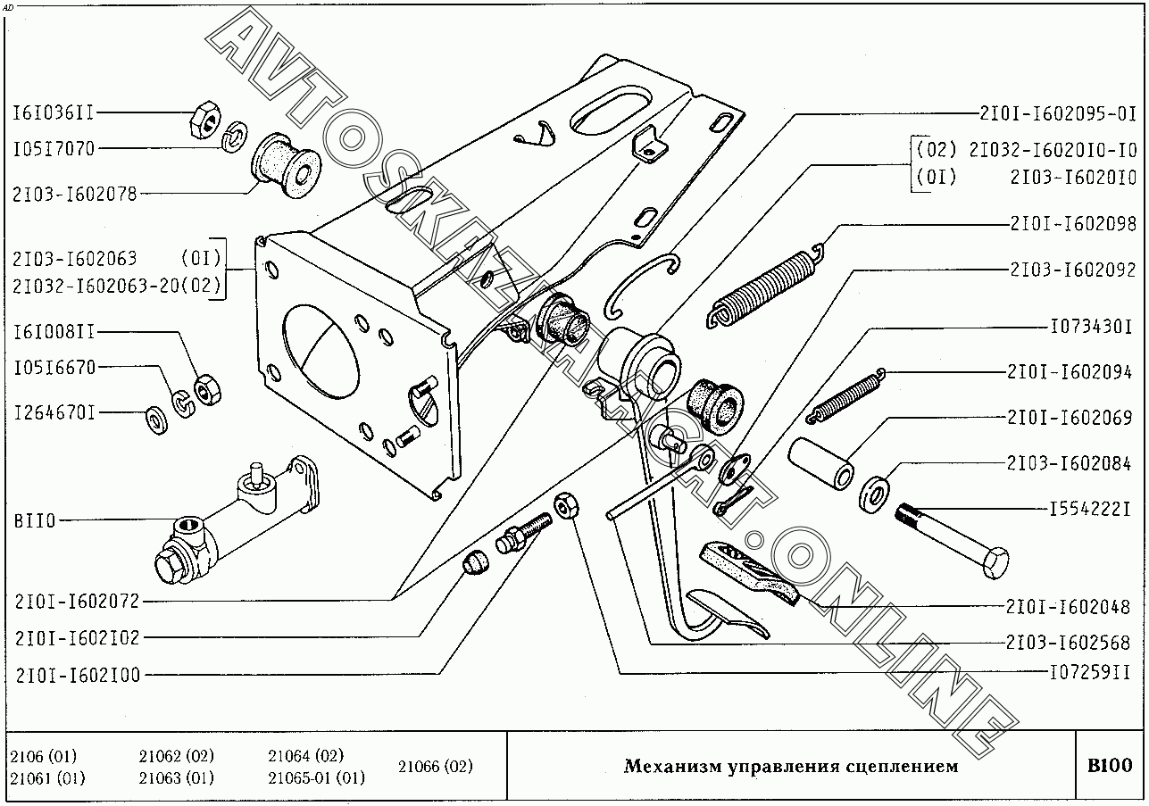 Механизм управления сцеплением ВАЗ 2106 (21061, 21062, 21063, 21064, 21065-01, 21066)