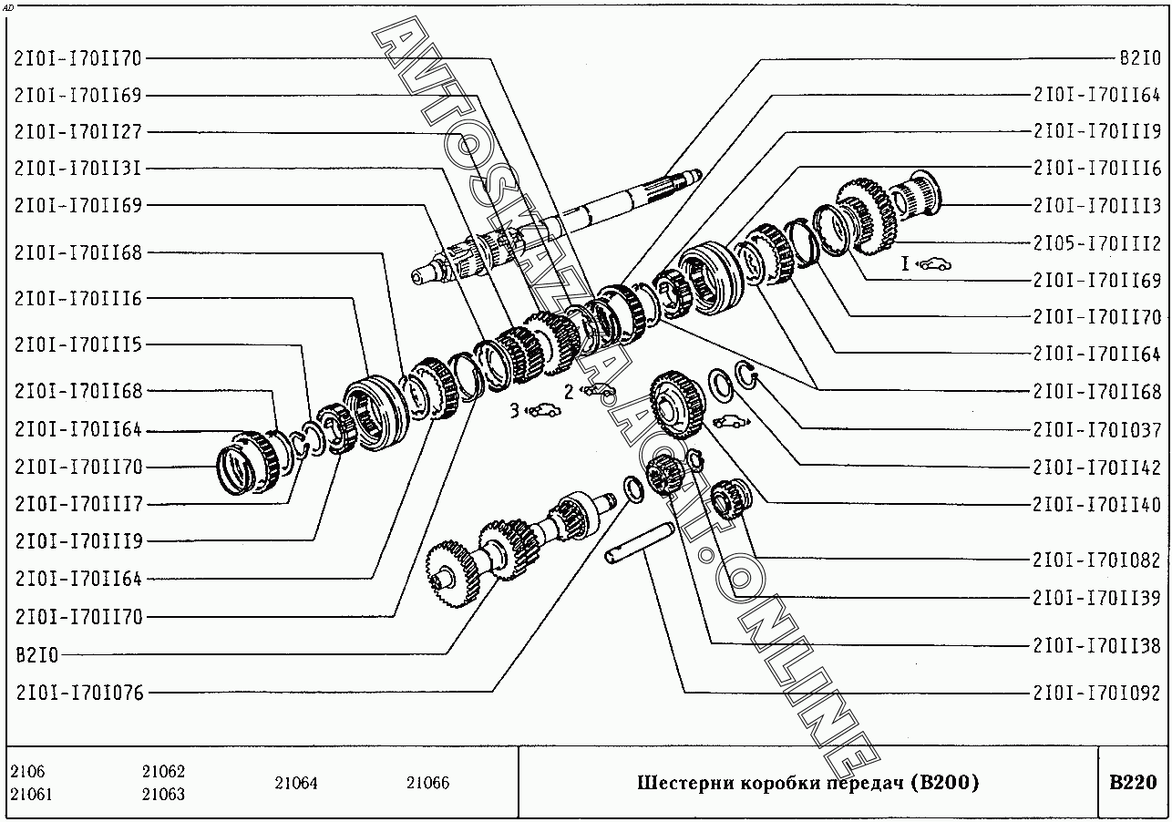 Шестерни коробки передач ВАЗ 2106 (21061, 21062, 21063, 21064, 21065-01, 21066)