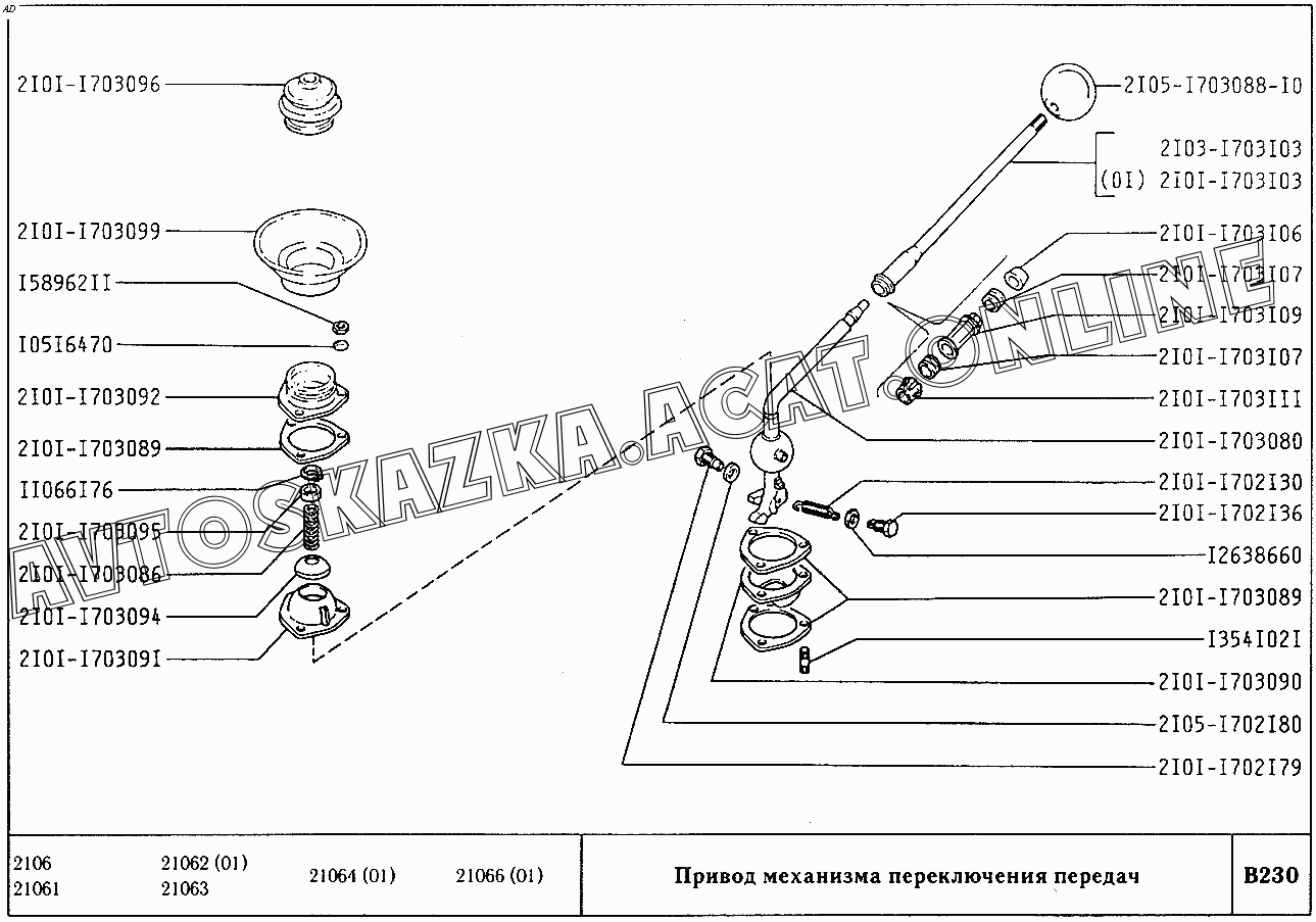 Привод механизма переключения передач ВАЗ 2106 (21061, 21062, 21063, 21064, 21065-01, 21066)