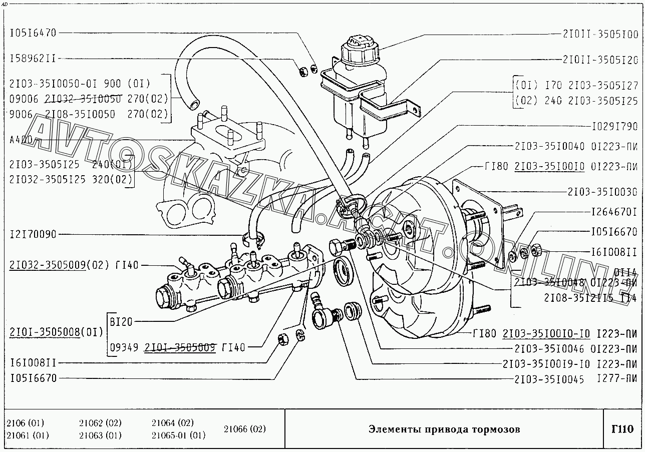 Элементы привода тормозов ВАЗ 2106 (21061, 21062, 21063, 21064, 21065-01, 21066)