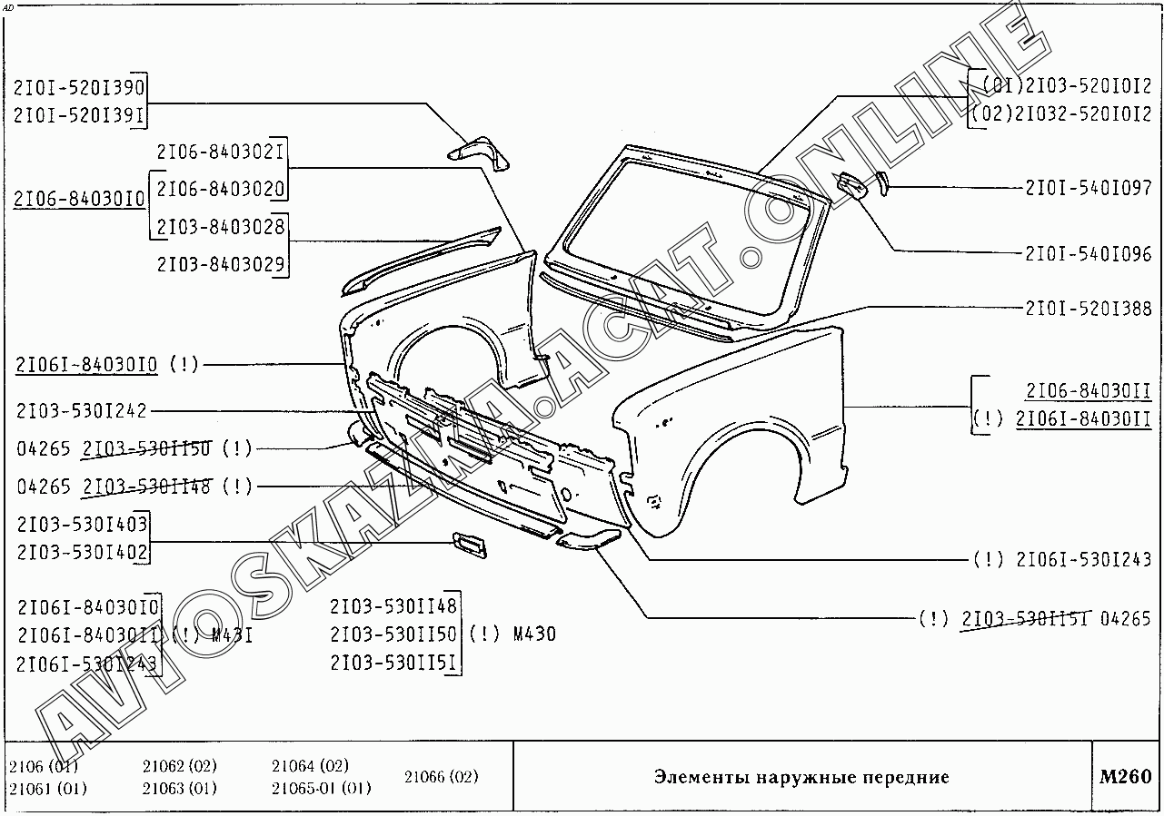 Элементы наружные передние ВАЗ 2106 (21061, 21062, 21063, 21064, 21065-01, 21066)