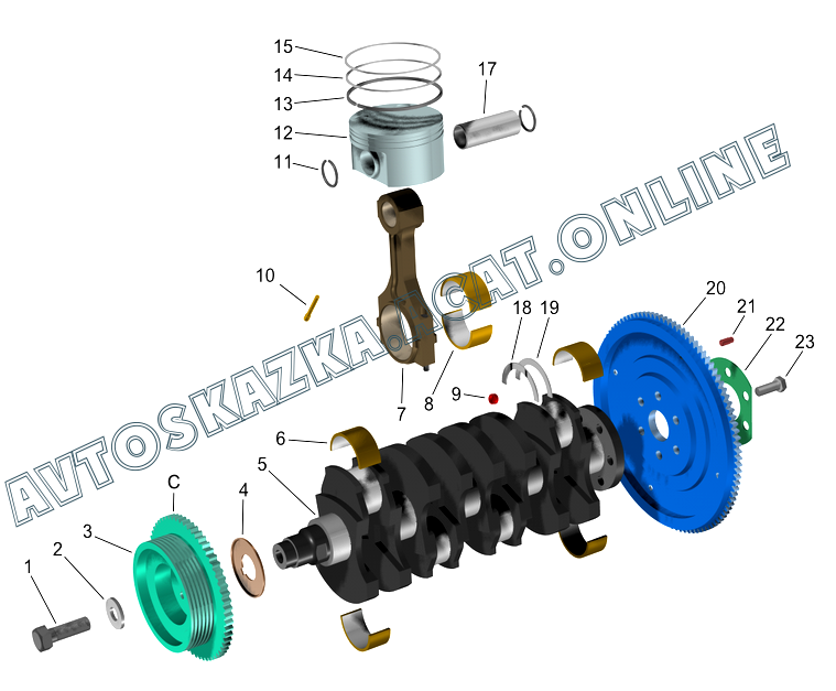 Вал коленчатый, маховик, шатуны и поршни ВАЗ 1119 Sport (11194-33, 11196-33 - "Калина" (хэтчбек))