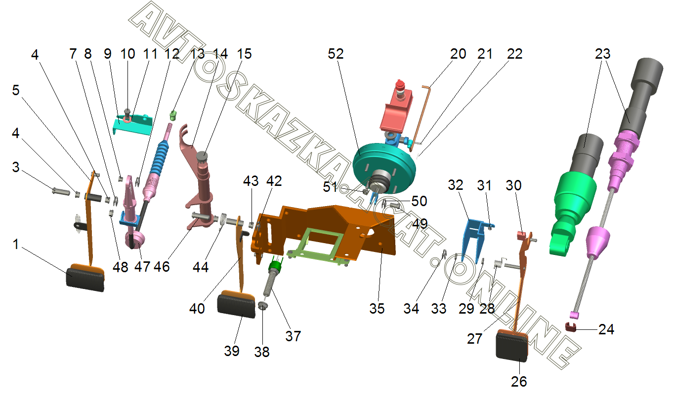 | Название детали: | Педали сцепления и тормоза с кронштейнами в сборе |