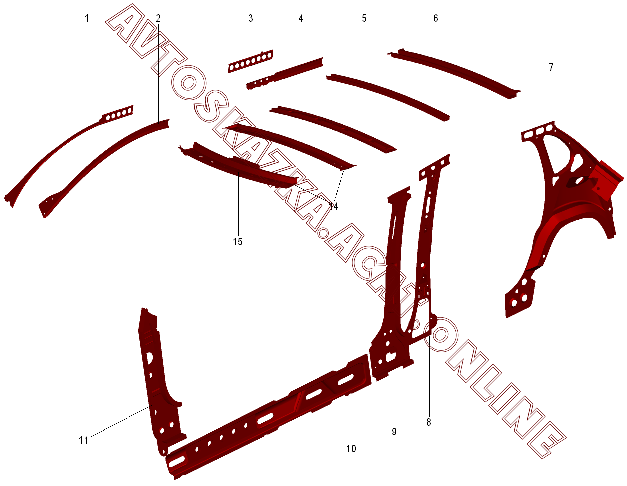 | Название детали: | Усилитель крыши в сборе |